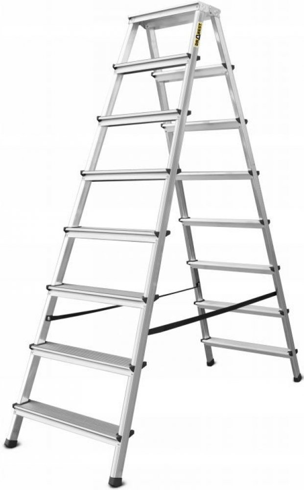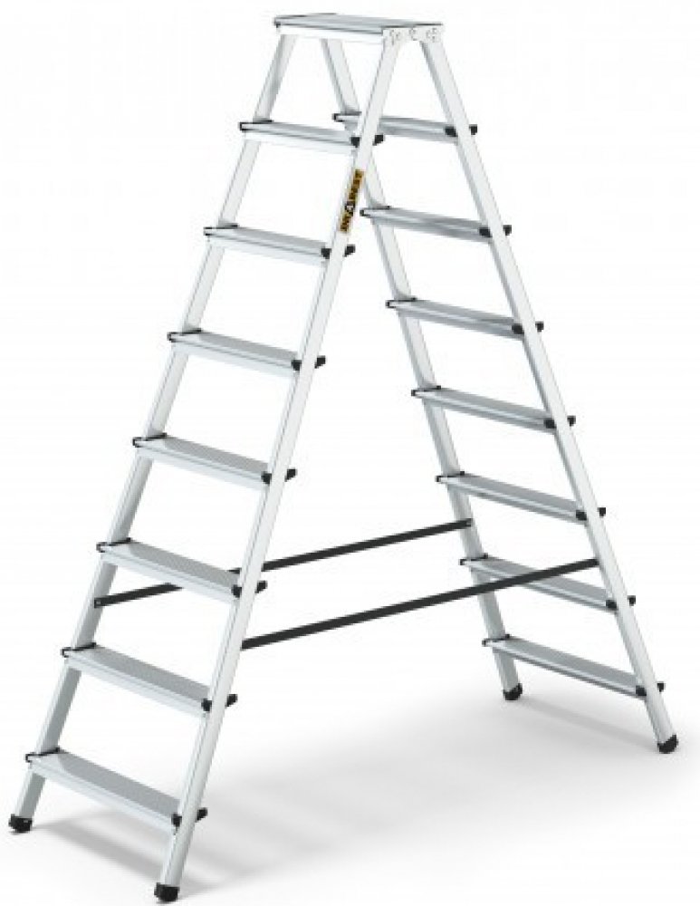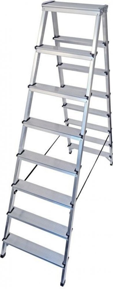 Oboustranný hliníkový žebřík má mnoho funkcí, které jsou ideální pro každodenní použití a menší renovační a stavební práce v domácnostech i servisních firmách. Výrobek má protiskluzové žebrované stupně o šířce 8 cm a speciální patky, které zabraňují sklouznutí žebříku při práci. Pohodlnou a bezpečnou práci zajišťuje protiskluzová stojící plošina (34x16 cm). Schůdky jsou přinýtovány k bočním lištám a dodatečně zajištěny v místech nýtů. Boční profily jsou spojeny pevnými bezpečnostními popruhy odolnými proti povětrnostním vlivům, které slouží jako ochrana proti stříkající vodě. Žebřík je lehký, kompaktní, snadno se ukládá a přepravuje. Vysoce kvalitní hliník k výrobě žebříku zaručuje dlouhou životnost. Náš žebřík splňuje normu EN-131 a nejvyšší bezpečnostní standardy na trhu.