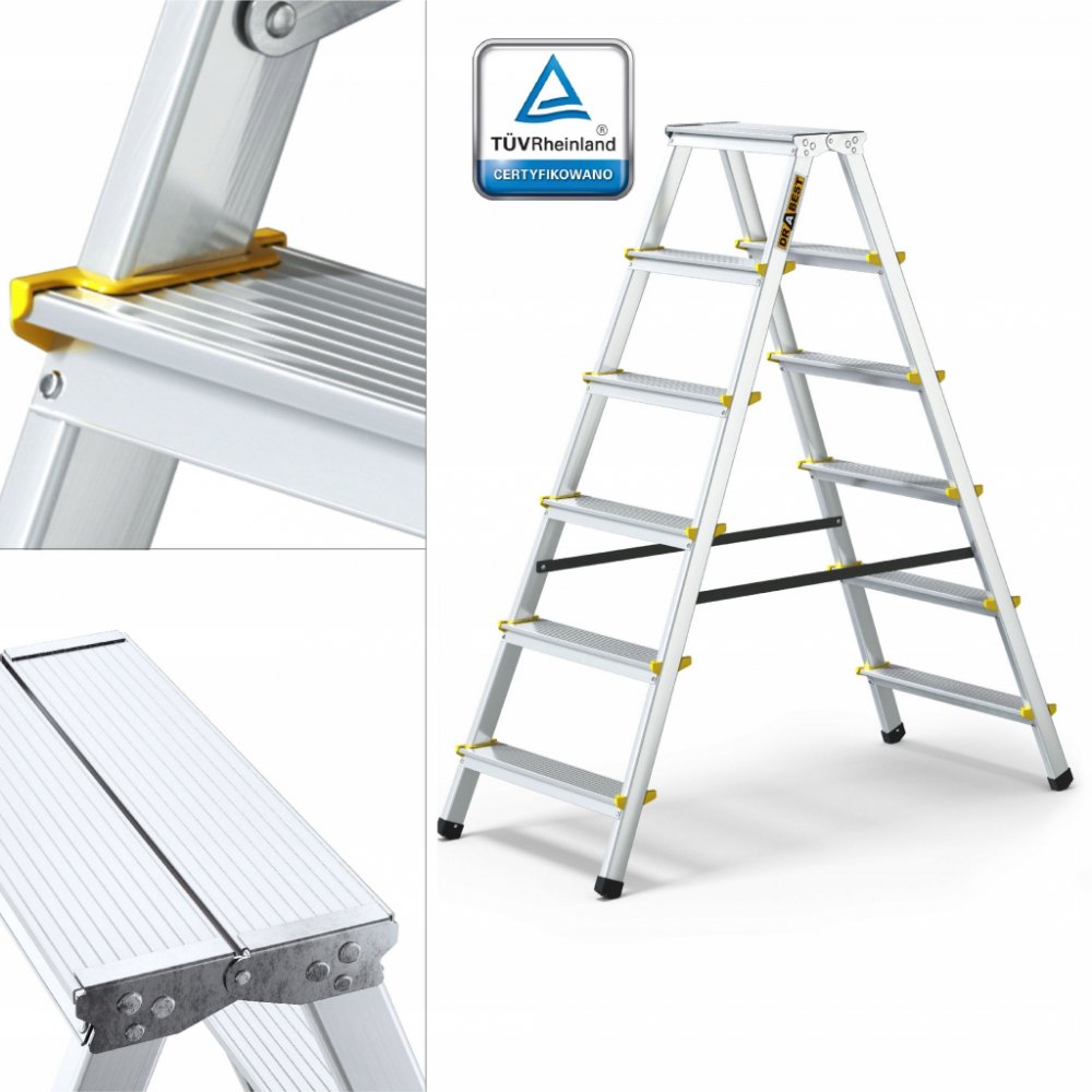Oboustranný hliníkový žebřík PRO – 2x6 stupňů, nosnost 150 kg