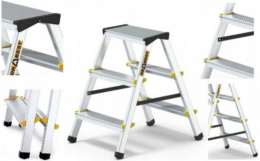 Oboustranné schůdky jsou vyrobeny z vysoce odolného a lehkého hliníku. Jsou velmi dobře manipulovatelné a ve složeném stavu zaberou málo místa.
