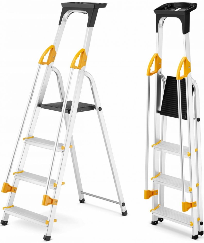Robustní hliníkové jednostranné schůdky vhodné např. pro maloobchody nebo domácí použití. Prostorné schůdky a plošina s protiskluzovými drážkami na povrchu pro větší pohodlí. Dvě dlouhá postranní madla s ergonomickou rukojetí na konci a protiskluzové patky zajistí větší bezpečnost. Praktická odnímatelná odkládací přihrádka. Snadná manipulace díky nízké hmotnosti. Schůdky lze po použití složit a us...
