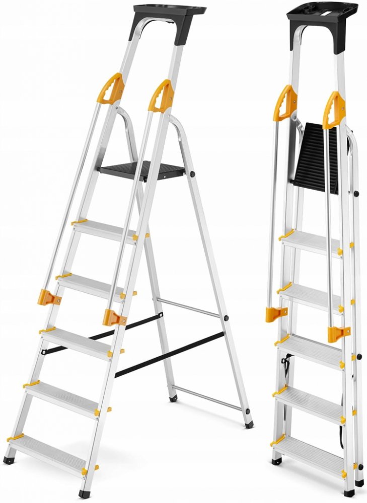 Robustní hliníkové jednostranné schůdky vhodné např. pro maloobchody nebo domácí použití. Prostorné schůdky a plošina s protiskluzovými drážkami na povrchu pro větší pohodlí. Dvě dlouhá postranní madla s ergonomickou rukojetí na konci a protiskluzové patky zajistí větší bezpečnost. Praktická odnímatelná odkládací přihrádka. Snadná manipulace díky nízké hmotnosti. Schůdky lze po použití složit a us...