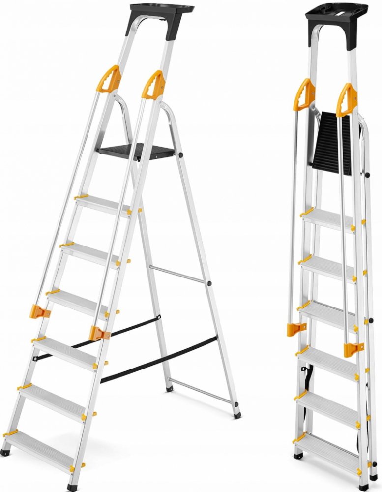 Pevná, kompaktní konstrukce s nejvyššími bezpečnostními parametry. Žebřík má pohodlná ergonomická madla, která zvyšují jeho stabilitu a zvyšují komfort používání při každodenní práci. Vysoká nosnost až 150 kg. Skvěle se bude hodit pro práci v domácnostech, ale široké uplatnění najde iv malých a středních podnicích či úklidových a renovačních firmách. Pevné výztuhy a široké schůdky s protiskluzovým...