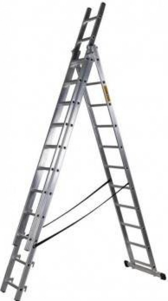 Profesionální víceúčelový žebřík DRABEST 3x13 příček lze sestavit jako štafle, výsuvný, opěrný nebo schodišťový žebřík. Žebřík nabízí široké možnosti uplatnění jak mezi profesionály, tak i kutily. Ilustrační foto, počet příček se liší dle typu žebříku. Nosným prvkem žebříku DRABEST 3x13 je tažený hliníkový profil 75x30 mm , do kterého jsou nalisovány příčky s rozměry 28x28 mm. Masivní konstrukce spolu s robustně nalisovanými příčkami dává žebříku mimořádnou tuhost, odolnost a dlouhou životnost . Špičkové stability a bezpečnosti je dosaženo širokým stabilizátorem s protiskluzovými patkami. Použitý stabilizátor dovoluje bezpečné výškové práce i na horším či nerovném terénu. Třídílné PROFI žebříky DRABEST jsou kvalitní, spolehlivé a bezpečné výrobky pro profesionální i domácí použití. Žebříky jsou vyráběny v EU a splňují přísné evropské normy. Mezi další přednosti patří široký výběr originálního příslušenství jako je např. pracovní plošina, manipulační kolečka, hák na vědro, střešní hák a další doplňky. Hlavní přednosti: profi kvalita široké možnosti použití protiskluzové prvky certifikovaný výrobek vyrobeno v EU široký výběr originálního příslušenství Technické parametry: počet příček: 3 x 13 max. pracovní výška: 8,76 m délka: 3,44 - 7,93 m (složený - rozložený) stabilizační základna: cca 100 cm nosnost: 150 kg materiál: tažený hliníkový profil STRONG 75x30 mm certifikace: EN 131 Technické parametry ke stažení ve formátu pdf zde.