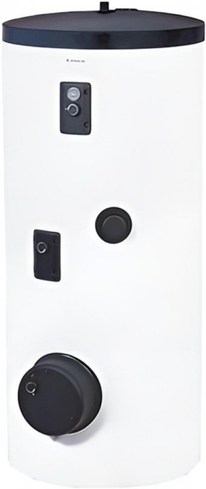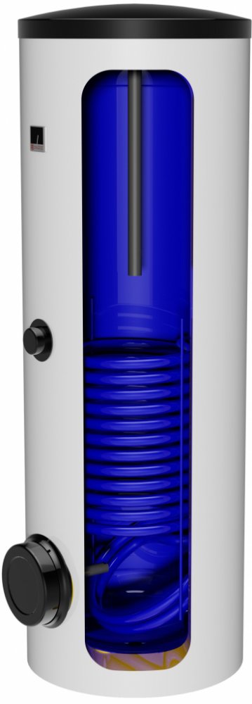 Stacionární zásobník teplé vody s boční přírubou a jedním výměníkem, vhodný k mnoha různým zdrojům tepla a má možnost instalace topného tělesa TT.