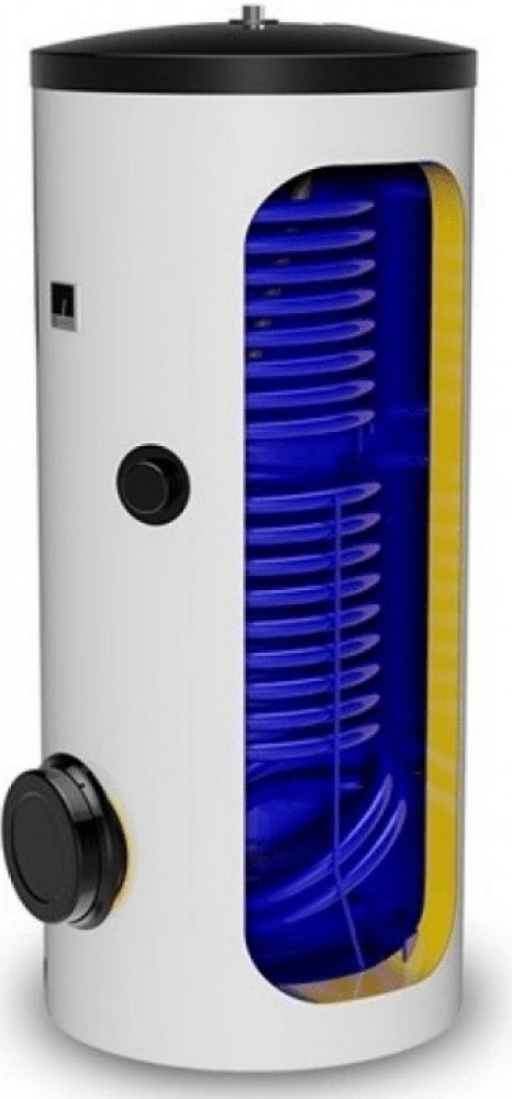Stacionární zásobník teplé vody s boční přírubou a dvěma výměníky, vhodný k mnoha různým zdrojům tepla a má možnost instalace topného tělesa TT.