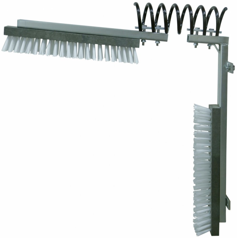 Pružinové drbadlo, pro koně a skot, robustní konstrukce, nastavitelný horizontální kartáč, materiál držáku kov, rozměry jednoho kartáče 50x10 cm.