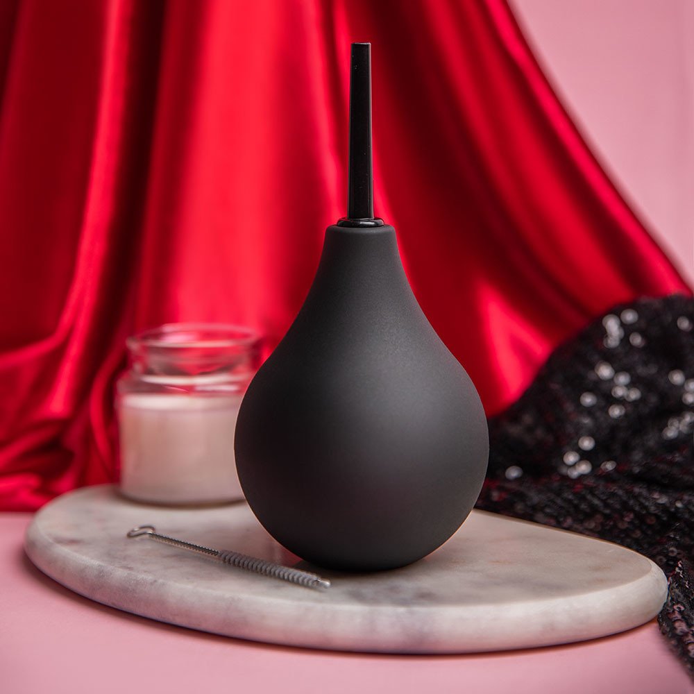 Tato sprcha moderního designu černé barvy vám poskytne smyslný hygienický výplach. Je tvořena z balónku z PVC materiálu a tyčinky z odolného ABS plastu. Balónek je měkký, má zdrsnělý povrch proti vypadnutí z ruky a příjemnější používání a pojme až 224 ml vody, což je dostačující objem pro dokonalý klystýr. Odnímatelná mimořádně tenká tyčinka je pak zúžená a zajistí snadné a příjemné zavedení. Kartáček je z kvalitního kovu a disponuje očkem pro komfortní manipulaci.