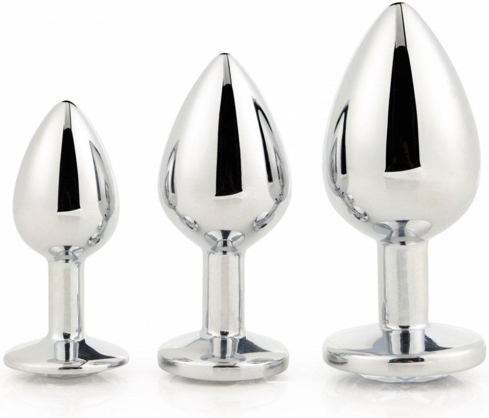 Potrpíte si na krásných špercích a chcete takový i pro svůj análek? Toto je snad nejkrásnější sada análních kolíků ever! Jsou elegantně stříbrné a zakončené skvostným čirým jiskřivým kamínkem. Vychutnejte si jejich tvar pro snadné zavedení i erotické potěšení a vyzkoušejte kolíky i zahřát nebo ochladit.