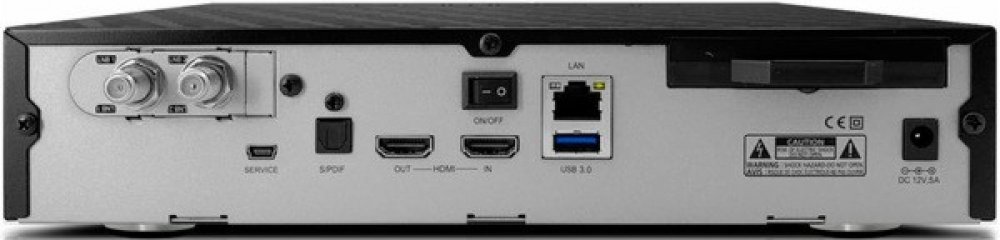 Pro připojení USB komponent jsou k dispozici dva vysokorychlostní USB porty 3.0 – 1 přední a 1 zadní. Pod předním odklopným panelem se nachází také čtečka paměťových karet SD. K TV můžete přijímač připojit jedině pomocí HDMI portu 2.0. Přijímač disponuje také vstupem HDMI IN, do kterého můžete připojit externí zařízení s HDMI výstupem.