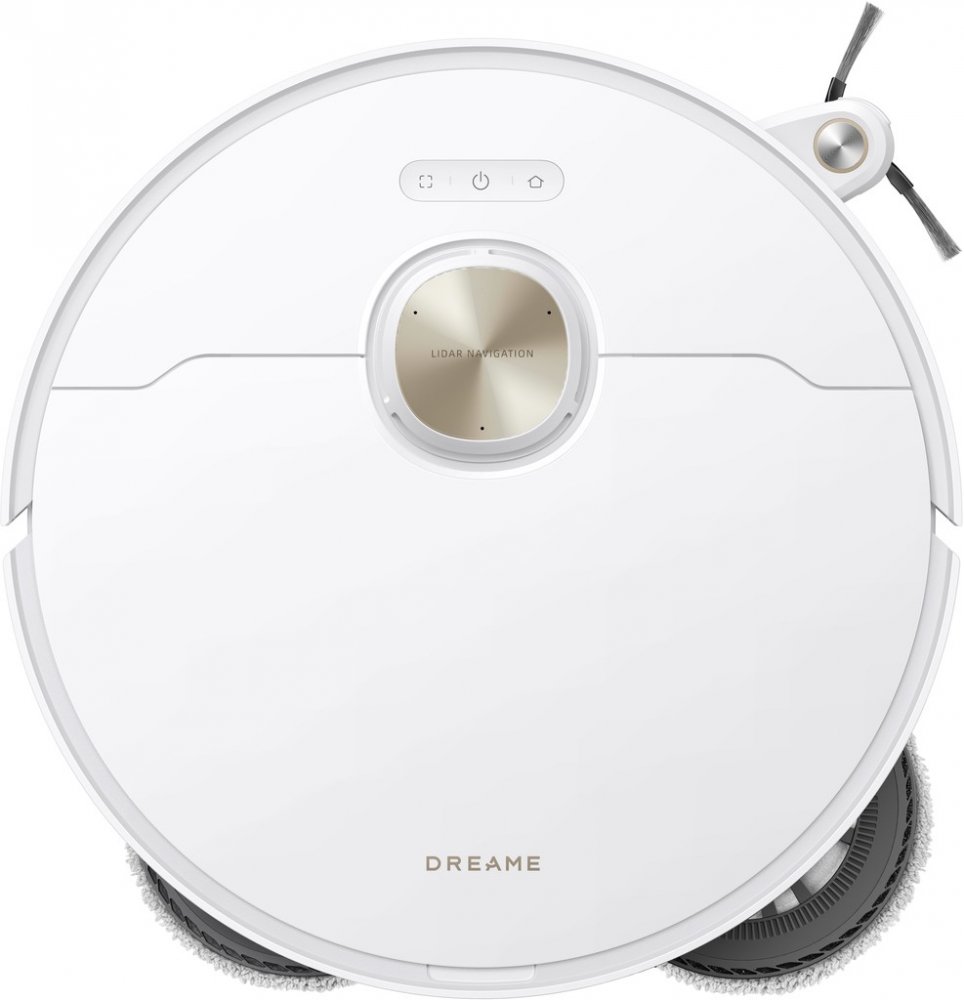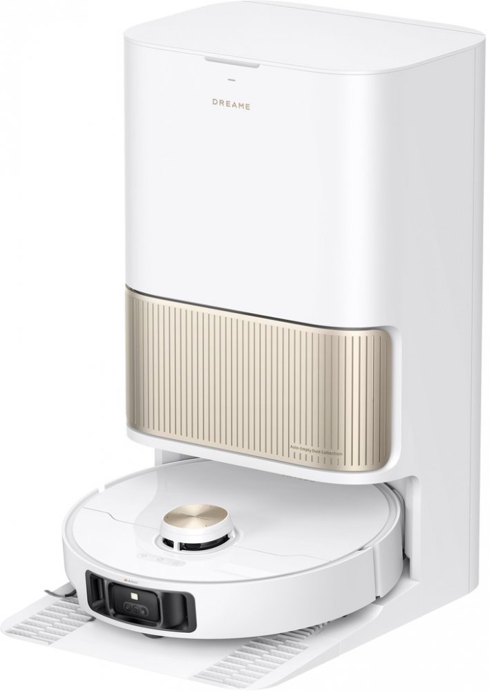 Robotický vysavač s mopem - na všechny druhy podlah, na vysávání, automatické dobíjení, senzor proti nárazu, pokračování úklidu po samostatném dobití, automatické vysypání, senzor proti pádu ze schodů, funkce odloženého úklidu a automatické čištění mopovacích návleků, dálkové ovládání, indikátor nabíjení a indikátor plného koše, ovládání mobilní aplikací, na těle, plastová sběrná nádoba o objemu 3,2 l, 1 boční kartáč, překoná překážky do výšky 4 cm, laserová navigace, Li-ion baterie, doba provozu 140 min, doba nabíjení 3,5 h, hlučnost 70 dB, rozměry 10,35 × 35 × 35 cm (V׊×H), hmotnost 4,23 kg, nabíjecí stanice součástí balení, bílá barva