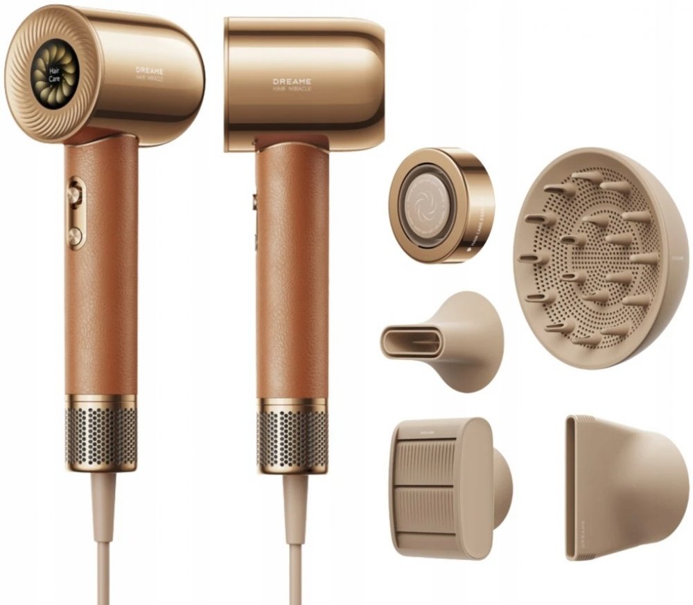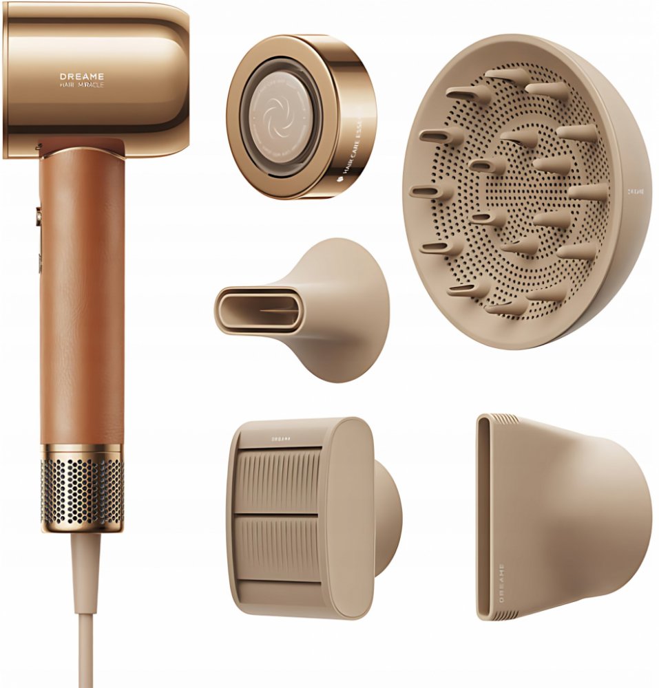 Fén Dreame Miracle Chcete dodat svému účesu objem? S fénem Dreame to bude možné! Vysoušeč vlasů Miracle se vyznačuje vyzařováním 600 milionů záporných platinových iontů, které chrání vaše vlasy a pomáhají zlepšovat jejich stav. Riziko poškození teplem eliminuje inteligentní systém regulace teploty a navíc výkonný motor, který dosahuje 130 000 otáček za minutu, zaručuje účinné vysoušení při rychlosti vzduchu až 70 m/s. Displej LCD usnadňuje používání a zobrazuje také zvolený provozní režim (k dispozici máte 4 různé možnosti). Nebojte se ani únavy rukou - ergonomický design toto riziko eliminuje. Součástí sady je 5 magnetických trysek pro snadnou úpravu účesu a vonná kazeta pro aromaterapeutický zážitek. Rychlost, účinnost a pohodlí S Dreame můžete zapomenout na zdlouhavé a únavné sušení. Miracle disponuje příkonem až 1 600 W a navíc využívá bezkartáčový motor pracující rychlostí 130 000 otáček za minutu. Zajišťuje tak proudění vzduchu až 70 m/s, což je více než u standardních motorů, které obvykle nabízejí kolem 110 000 otáček za minutu. To vám umožní vysušit středně dlouhé vlasy za pouhých 120 sekund! S vysoušečem Dreame můžete věnovat více času ranní kávě. Inovativní konstrukce větrné turbíny navíc znamená, že vyvíjený točivý moment je nižší, což zajišťuje delší životnost rotoru. Péče o vlasy na vyšší úrovni Dreame Miracle vyniká tím, že generuje až 600 000 000/cm3 záporných iontů. Pomáhá tak uzavírat vlasové kutikuly a udržovat vlhkost - což je obzvláště důležité, pokud se potýkáte se suchými nebo poškozenými vlasy. Roztok také snižuje problémy s krepatěním a chrání před poškozením teplem. Od této chvíle bude mít váš účes přirozený lesk a hebkost! Iontová emise také hydratuje a vyživuje pokožku hlavy. To může pomoci urychlit růst vlasů a zabránit tvorbě lupů. Přizpůsobeno vašim potřebám Fén Dreame si můžete přizpůsobit svým potřebám. Miracle je dodáván až se 4 tepelnými režimy, jako je Cool pro styling, Hair Core pro optimální rozptyl a absorpci oleje, Quick Dry pro rychlé vysoušení mokrých vlasů a Gentle pro střídání teplého a studeného vzduchu pro ochranu vlasů. To vše znamená, že Dreame vyhoví téměř každé potřebě! S ohledem na zdravé vlasy Pomocí nejmodernější technologie řízení teploty NTC vysoušeč Dreame Miracle přesně monitoruje teplotu foukaného vzduchu, aby nepřekročila nastavenou hodnotu 57 °C, a zajišťuje tak bezpečné a účinné vysoušení. Mikroprocesor pracující rychlostí 500krát za sekundu navíc dynamicky upravuje teplotu v reálném čase, čímž zajišťuje optimální podmínky pro vaše vlasy a pokožku hlavy. Díky tomu se nemusíte obávat případného poškození vlasů.