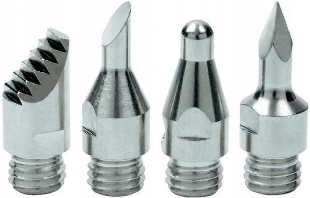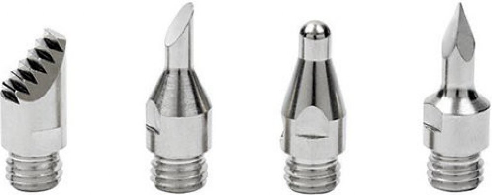 Toto nové pyrografické příslušenství Dremel se používá na vypalování různých pyrografických motivů do dřeva nebo do kůže. V soupravě jsou čtyři hroty různého tvaru: kulový, oválný, ostrý a vzorkovací hrot. Aplikace zahrnují kreslení, stínování, šrafování atd. Všechny hroty jsou určeny pro použití s plynovou páječkou Dremel® VersaTip.
