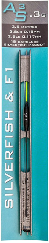 Splávek: AS3Váha: 0.3g, 0.4g, 0.5gKmen: karbonŠpička: 1.25mm dutáCelková délka: 3.5mHlavní vlasec: 0.15mm SupplexNávazec: 15cm z 0.117mm SupplexVelikost háčku: 18 Drennan Silverfish MaggotShotting: Bulk plus two No10 droppers