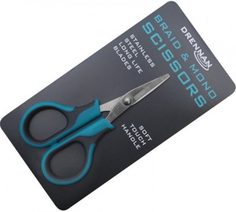 Tyto rybářské nůžky mají vroubkované čepele z nerezové oceli, takže účinně stříhají. Jemné vroubkování na přední hraně jedné čepele pomáhá udržet vlasec na místě, zabraňuje jeho sklouznutí a zároveň umožňuje přesné provádění malých střihů. Společnost Drennan navrhla tyto rybářské nůžky s měkkými rukojeťmi pro uchopení prsty, takže se pohodlně používají.