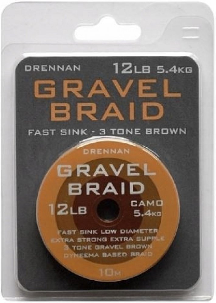 Gravel Braid je extra silná a pružná šňůrka. Tato šňůrka je vyrobena z dyneema vláken a je určena především k lovu velkých ryb. Šňůrka je složena ze tří podobných hnědých tónů, které poskytují při lovu na řekách, štěrkovištích nebo jezerech velmi dobrou kamufláž. Materiál této šňůrky je velmi ohebný a měkký. Balení 10 m.