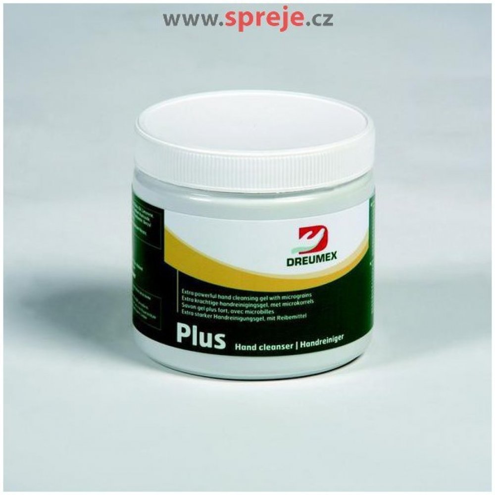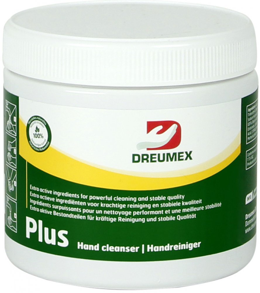 Mycí pasta DREUMEX myje úspěšně ruce v Evropě již 40 let. PLUS žlutá 0,6 l - nejvyšší čistící síla.Velmi silný čisticí gel na ruce na těžké průmyslové znečištění, čistí například dehet, barvu, lak, klih, lepidlo apod. Zvláště vhodný pro servisy, menší dílny, lakovny, tiskárny, malířský a dekorativní průmysl. Zvyšující se čisticí síla, jelikož obsahuje abrasiva přátelské ke kůži, svěží citrusová vůně z přírodních přísad, větší možnost použití, POUZE NA SUCHÉ RUCE.