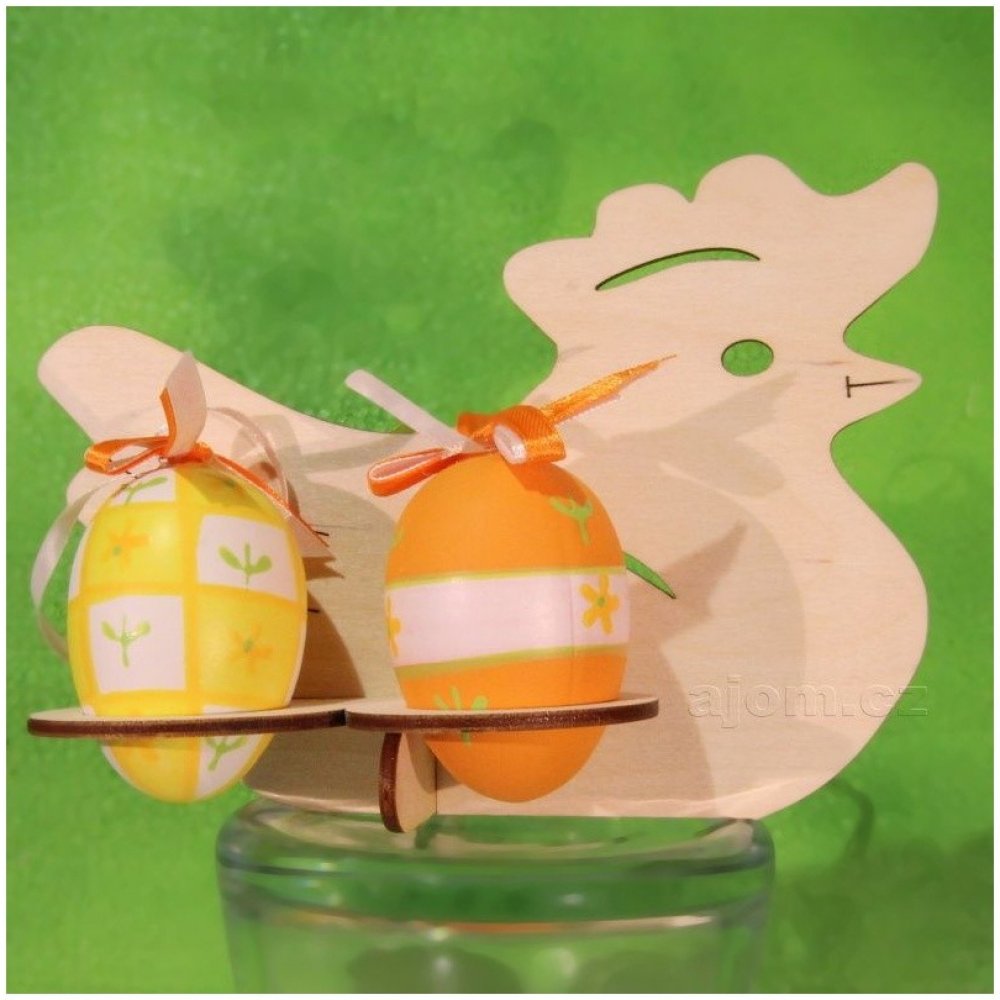 Dřevěná dekorace Velikonoční stojánek na vajíčka Slepička 17cm