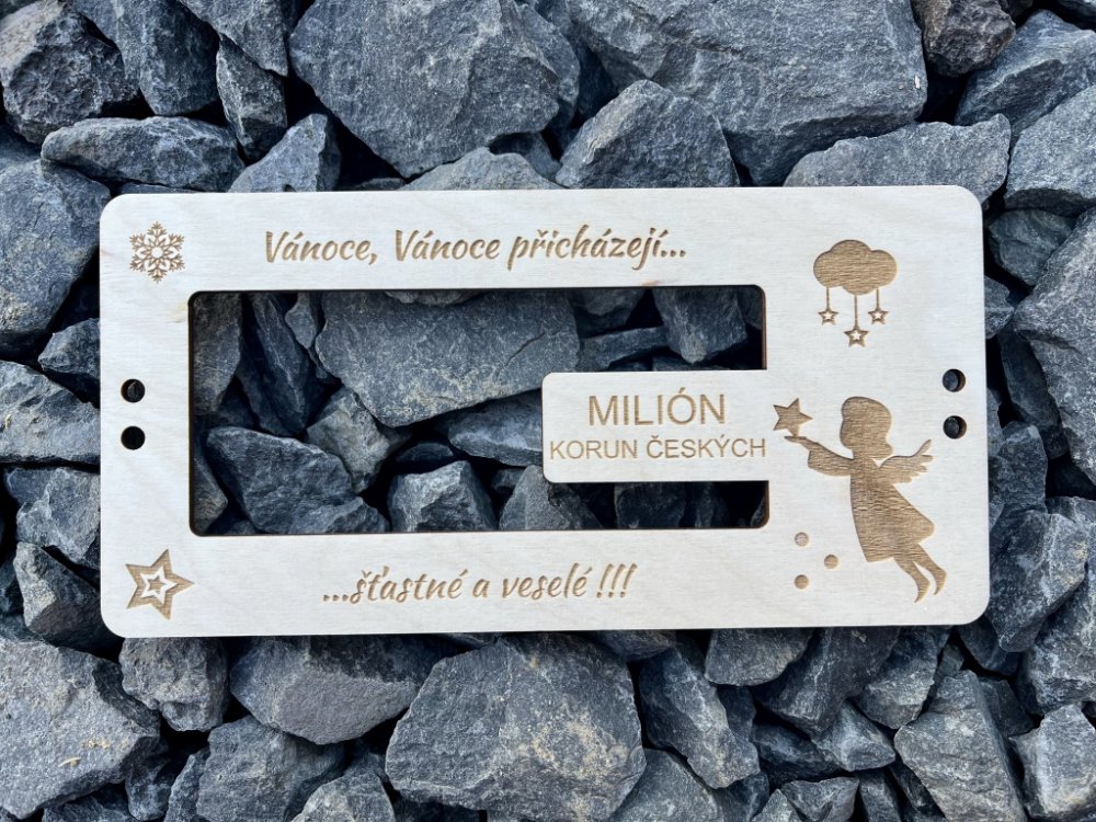 Dřevěná kazeta na peníze - MILIÓN -ANDĚLÍČEK