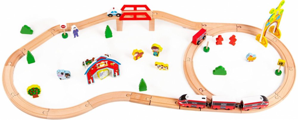 Dřevěná kolej Ecotoys s vláčky a doplňky