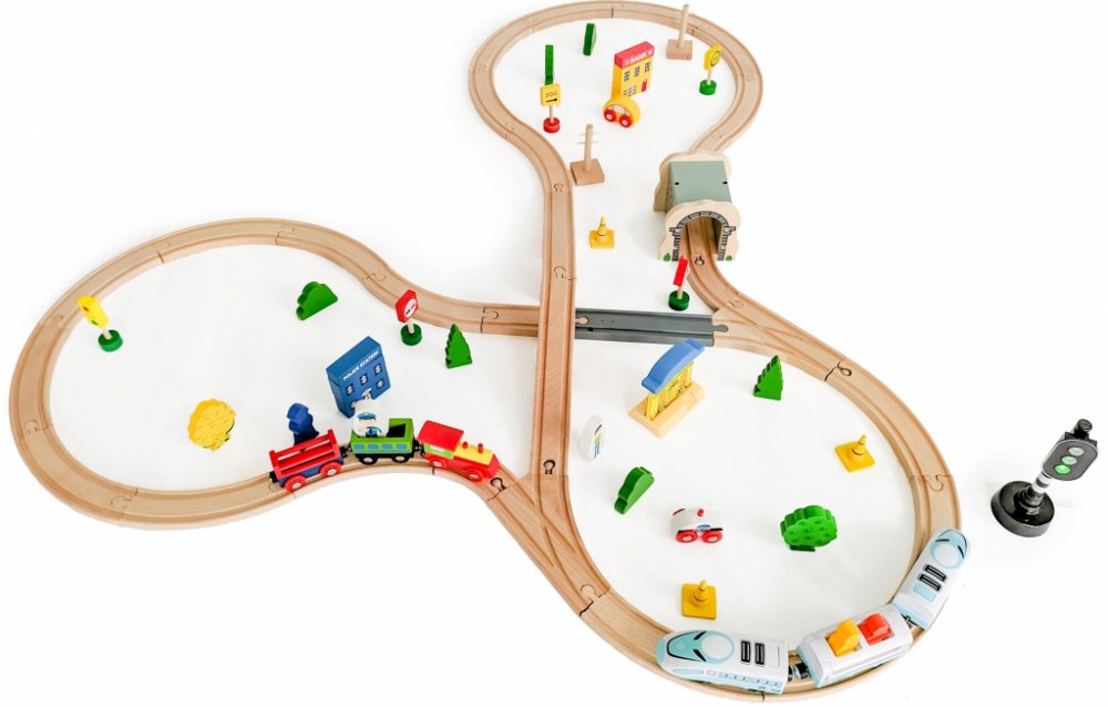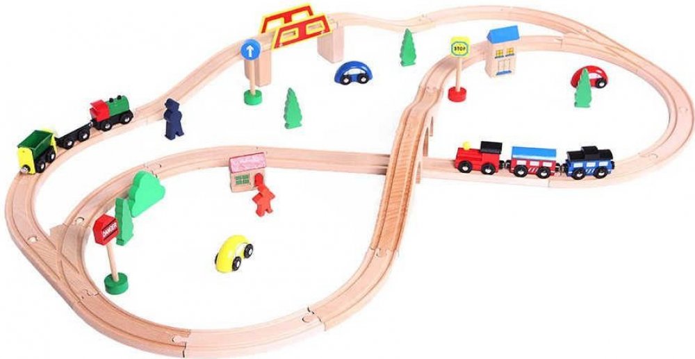 DŘEVĚNÁ VLÁČKODRÁHA 69 PRVKŮ ECOTOYS