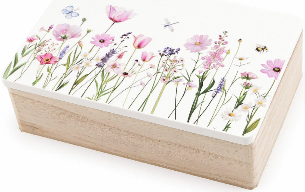 Dřevěná krabička s květinami varianta 2 - luční květy