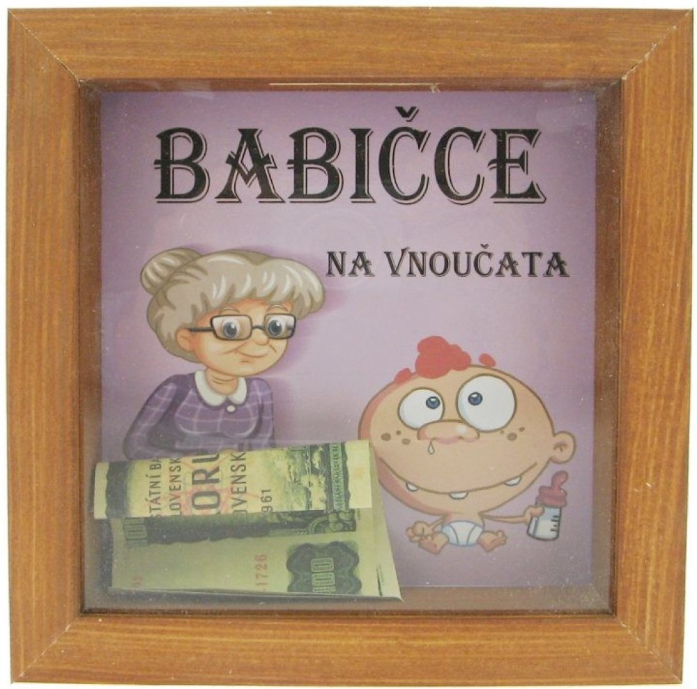 Dřevěná pokladnička, s vtipným obrázkem schovaným za sklem. Pokladnička vhodná pro všechny lidi oplývající humorem. Pro vyjmutí naspořeného obnosu není třeba pokladničku rozbíjet, ale ze zadní strany lze peníze jednoduše vytáhnout.