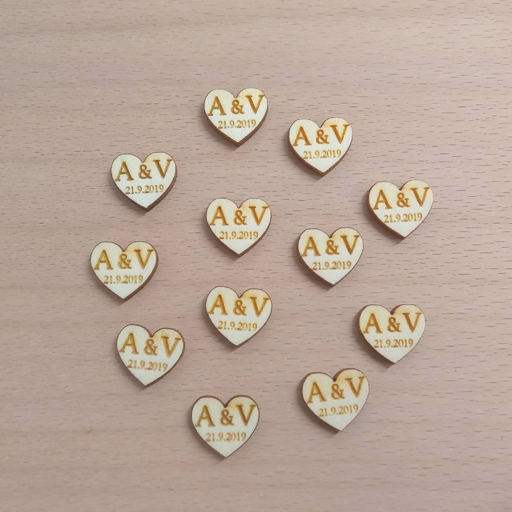 Krásná originální dřevěná srdíčka pro váš svatební den. Vygravírujeme vám pro radost inicály tak, jak si představujete. Rádi případně uzpůsobíme i font písma, vše tak, aby jste byli spokojení. V této době velice krásný detail pro vaši svatbu. Vše pěkně čitelné a neotřelé. Udělejte si sami pěkné vývazky z pohodlí domova pěkně dopředu. Je to náš jeden z nejvíce oblíbených produktů, které už udělali radost na stovkách svateb a nás vždy potěší další objednávka. Navíc za skvělou cenu.