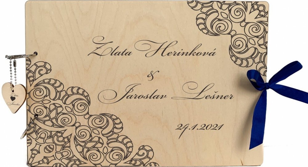 Svatební kniha o velikosti 22 cm x 32 cm je vyrobeno z kvalitního březového dřeva, do kterého je laserem gravírován nebo tištěn Váš text a vyobrazená grafika. Svatební kniha je vázaná dvěma kovovými kroužky a na výběr máte ze dvou barevných druhů vnitřního tvrdého kvalitního papíru velikosti A4 (Bílá 220 g/Černá 230 g). Fotoalbum obsahuje 1x barevný tvrdý papír, který prosvítá a určuje barvu srdíček. Dále máte k dispozici 30 listů tvrdého papíru. Celkem tedy máte 60 stran pro umístění Vašich fotografií a popisků.