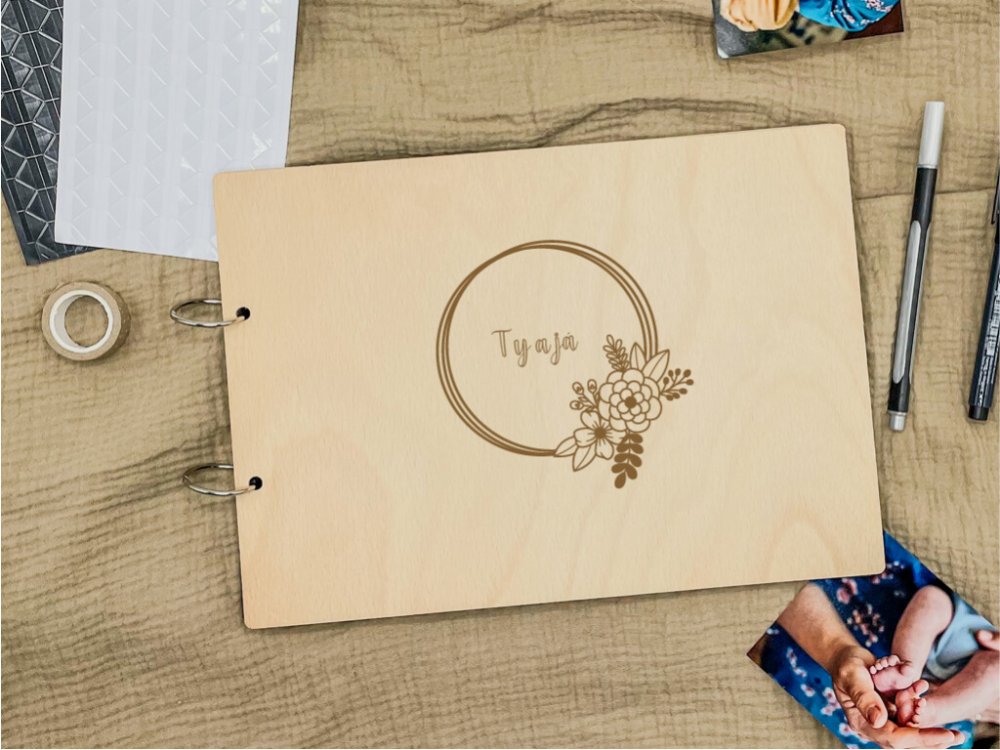 Fotoalbum s vygravírovaným věnečkem a s nápisem