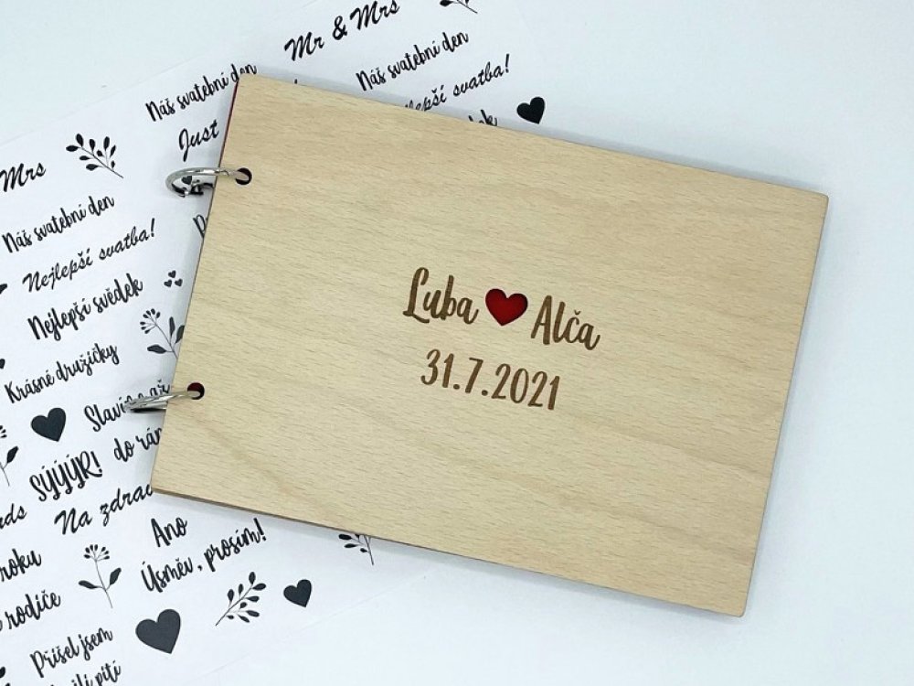 Fotoalbum s pevnou dřevěnou vazbou a s Vašimi jmény.