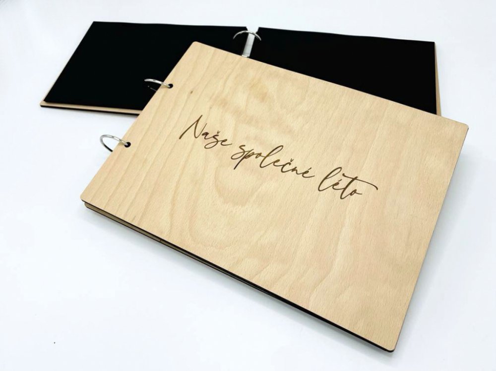 Dřevěné album s vlastním textem Formát: A5 (799 Kč), Barva listů: Černá