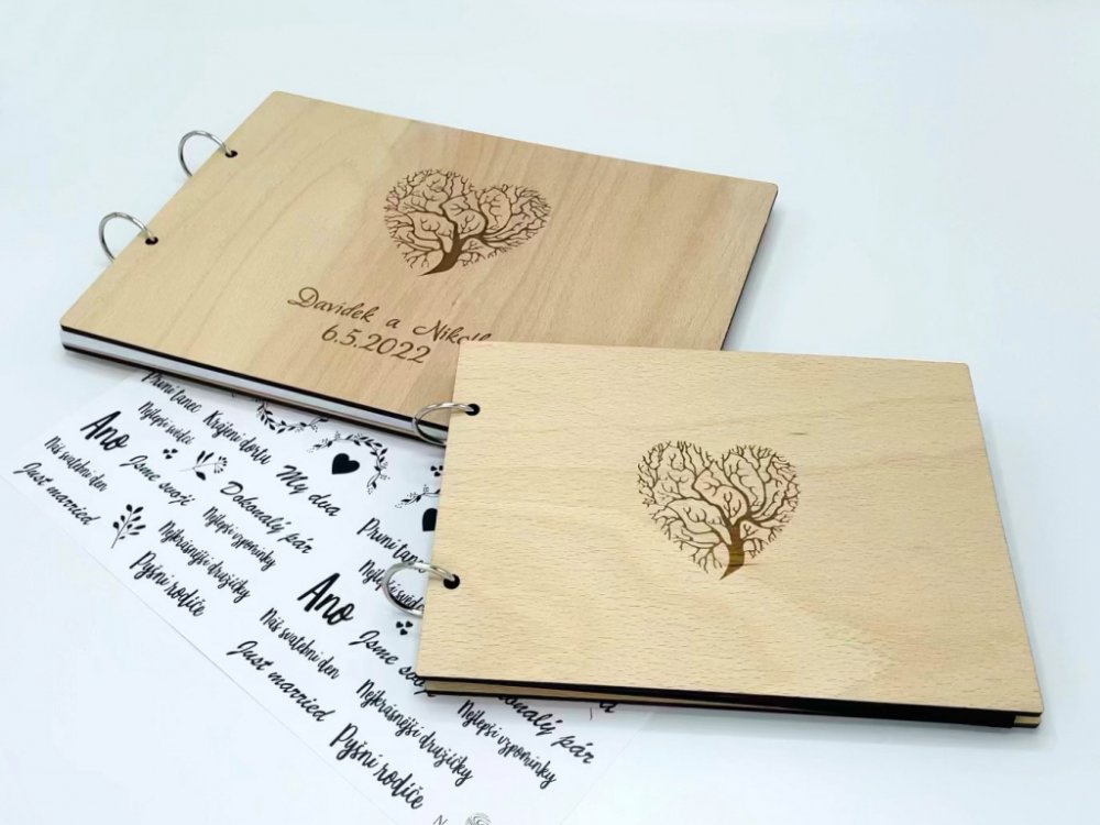 Dřevěné album Srdce Formát: A5 (599 Kč), Barva listů: Bílá