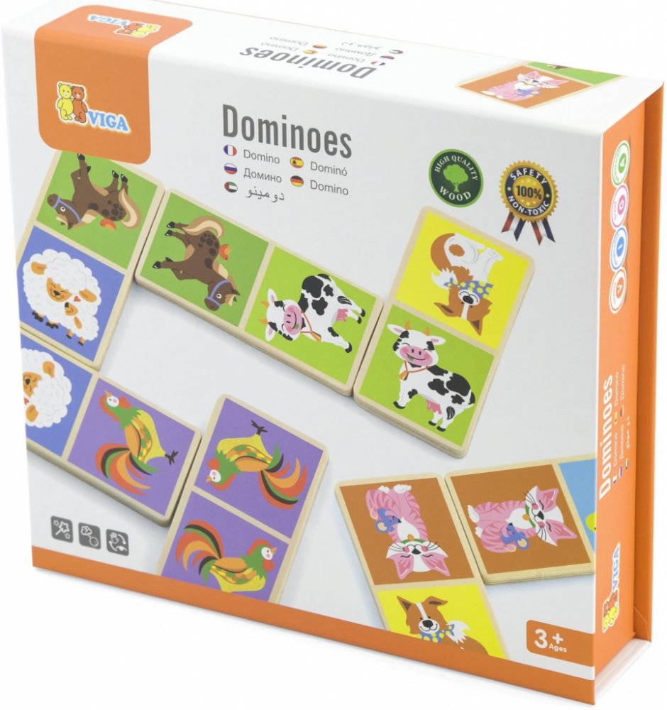 Domino od společnosti Viga je jednou z nejkrásnějších her která vydrží dlouho a poskytne vašemu dítěti mnoho let zajímavé a kreativní hry. Všechna zvířátka a jejich funkce v našem životě vzbudí zvědavost o světě a podpoří napodobování zvuků a pomůže naučit se říkanky a písničky. Dítě si bude stále rychleji všímat podobností mezi zvířátky... s každým dnem hra vykouzlí na dětské tváři větší a větší úsměv každé vítězství je bude dále motivovat k učení nových říkanek. Naučí přesnosti a pečlivosti při uspořádávání kostek. Barevné domino je příjemné na pohled a podporuje hru. Cílem hry je poskládat všechny kostky na sebe. Kdo je první Ten lepší Společně strávený čas s vaším dítětem se postará o nezapomenutelné chvíle a skvělou zábavu. Celá sada je vyrobena z bukového dřeva a natřena nezávadnými barvami v zářivých barvách které upoutají pozornost podpoří hru a zároveň poskytnou spoustu zábavy.Naší prioritou je bezpečnost dětí a nejvyšší kvalita hraček proto dbáme na to aby barvy které používáme k natírání našich hraček byly netoxické a splňovaly bezpečnostní normy EN71 a ASTM.Tato hračka je vhodná pro děti starší 3 let. Rozměry výrobku 15 x 25 cm