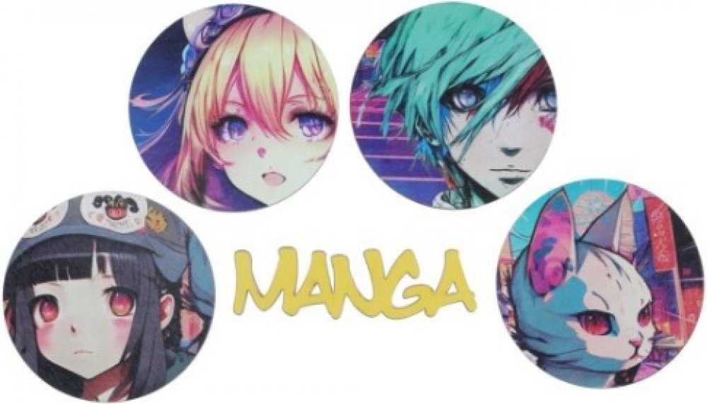 Technické parametry:Materiál: dřevoRozměry: průměr 5 cm (postavičky), 7 x 2 cm (nápis Manga)Barva: vícebarevná (Manga motivy)Balení: 10 ks