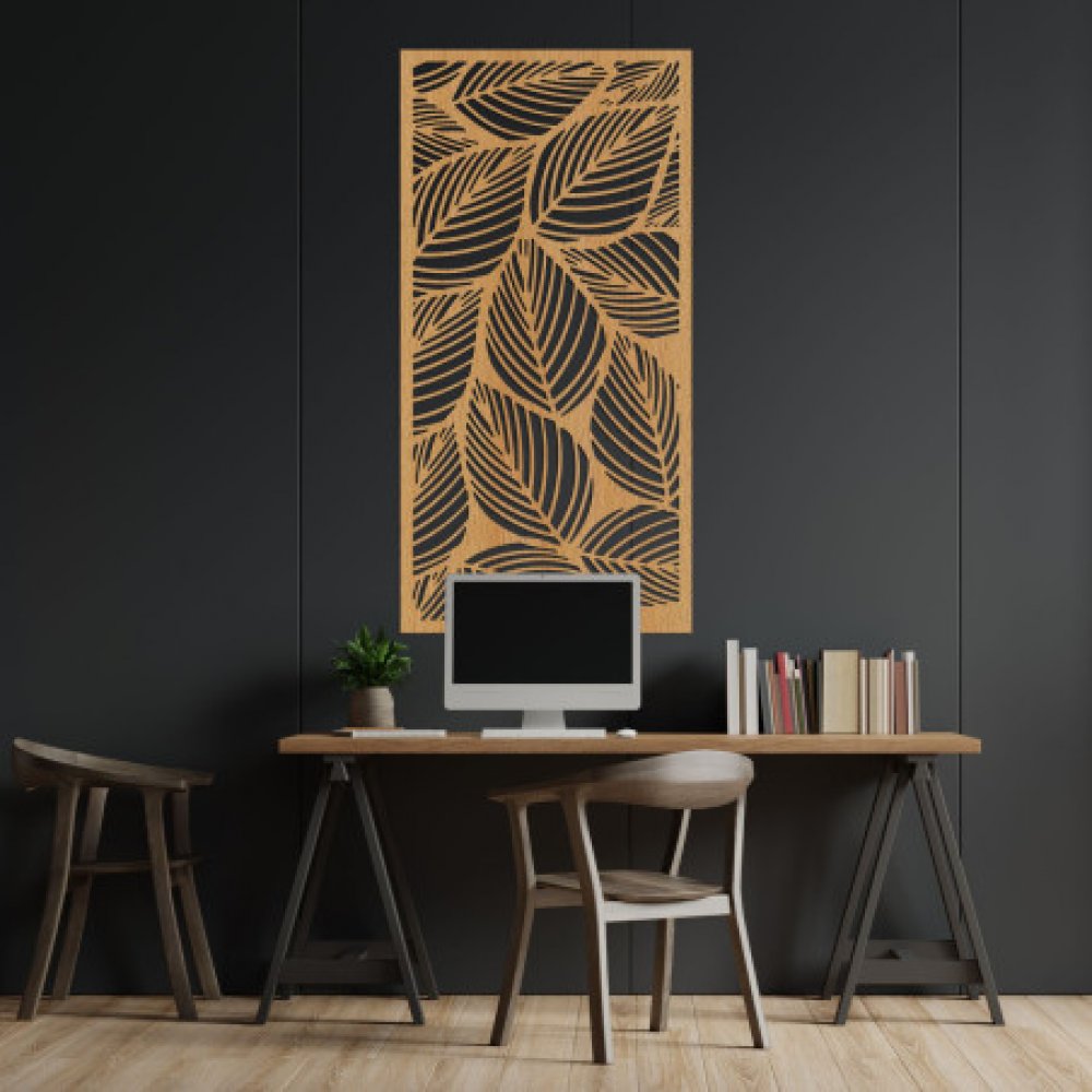 Dřevěná dekorace se vzorem listů symbolizuje růst, klid a spojení s přírodou. Dřevo se bude na stěně krásně vyjímat a doplní moderní i boho interiéry. Pro dokonalý efekt ji zkombinujte s dřevěným nábytkem nebo rostlinami.
