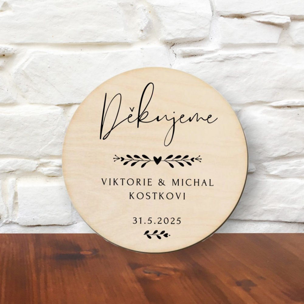 Přírodní dřevěný podtácek s gravírováním - poděkování