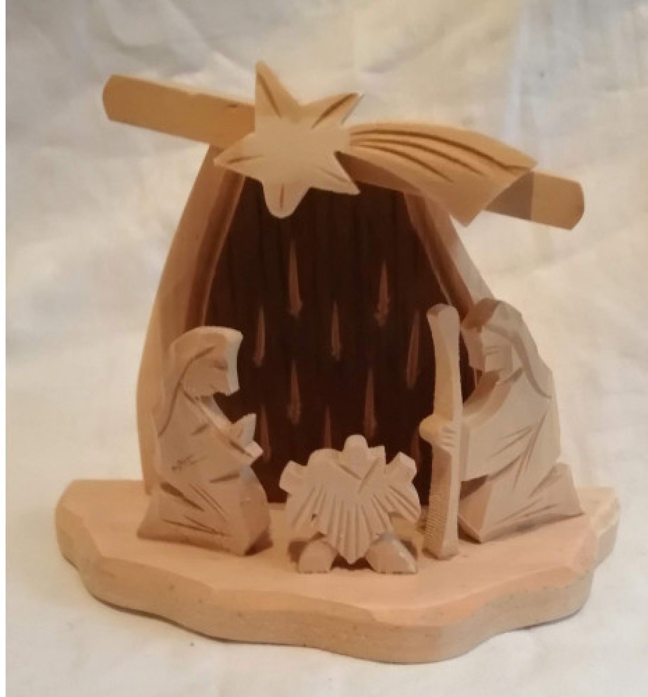 Dřevěný ručně vyřezávaný betlém.