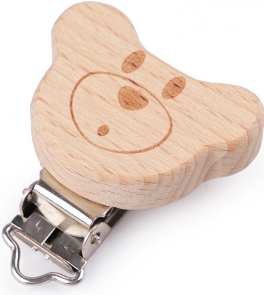 Dřevěný klip lze použít k výrobě šňůrky na dudlík nebo třeba jako úchyt k chrastítku na kočárek.