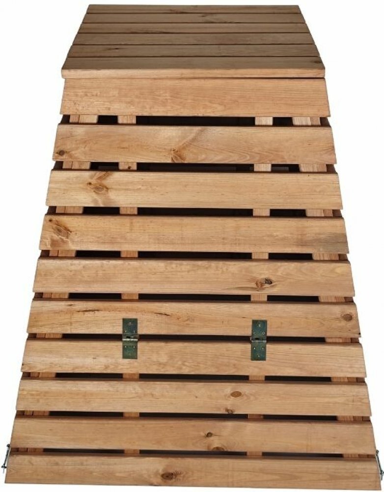 Kompostér je vyroben v české truhlárně ze smrkového nebo borovicového dřeva ošetřeného přírodním olejem. S objemem 430 litrů nabízí dostatek prostoru pro bioodpad a díky pevnému zpracování se stane dlouhodobým pomocníkem na vaší zahradě. Praktické víko a otevírací přední část usnadní manipulaci i vybírání hotového kompostu.