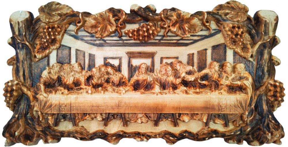 Dřevěný obraz poslední večeře, 70 x 36 cm