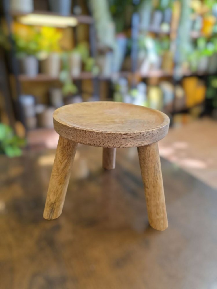 Materiál: dřevoBarva: přírodní hnědáVýška: 11 cmPrůměr horní plochy: 12 cmRozpětí nožek u země: 15 cmPočet nožek: 3