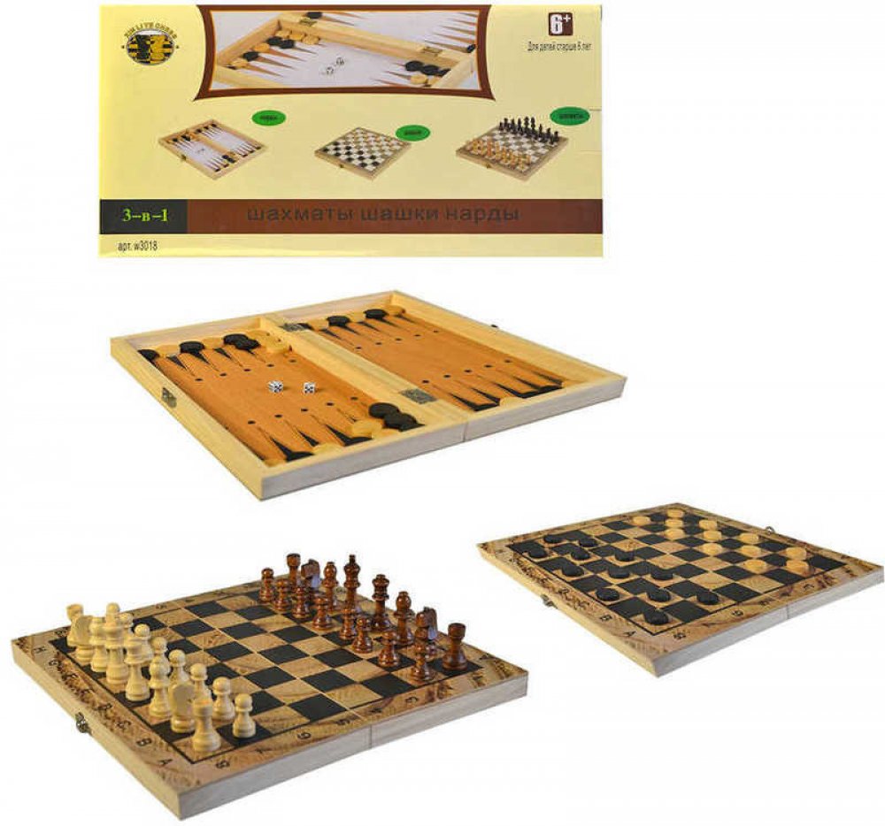 Klasické stolní hry v kompaktním formátu ve vyklápěcí dřevěné kazetě. 3in1