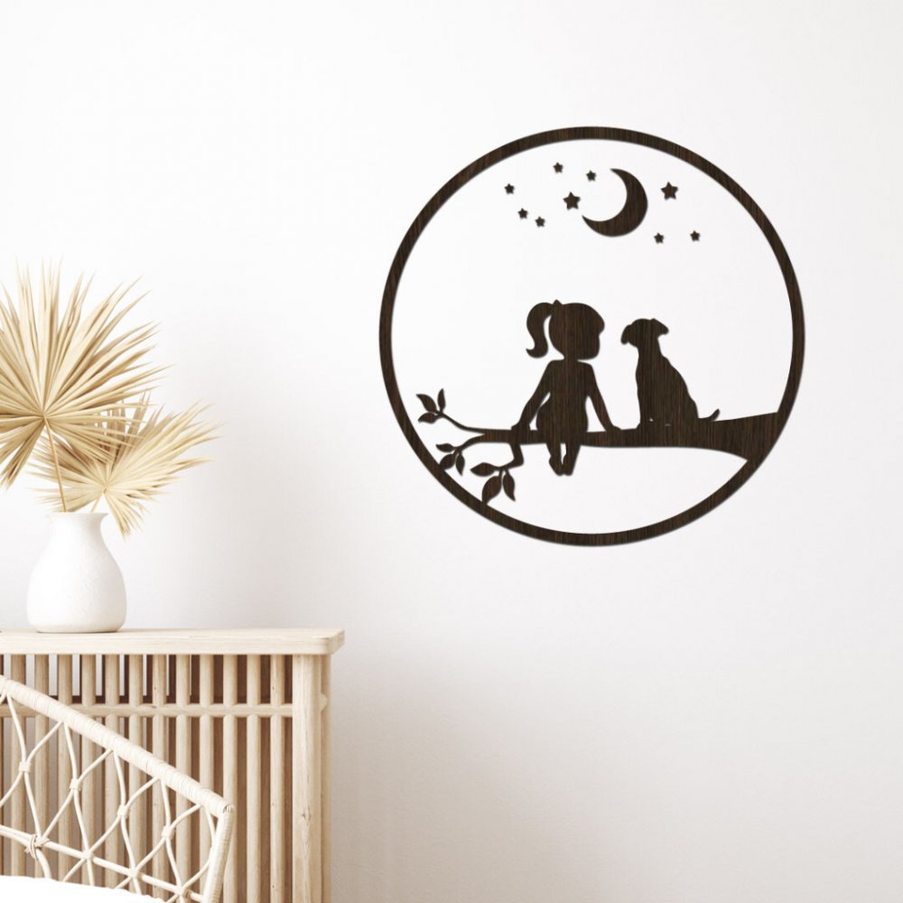 Dřevěná dekorace na zeď Dívka s psíkem přináší do vašeho domova jemnost, radost a kouzlo přátelství mezi člověkem a zvířetem. Tento motiv vyzařuje lásku a věrnost, které spojují dívku a jejího čtyřnohého kamaráda. Dekorace je vyrobena z kvalitního HDF materiálu, který je lehký, odolný a ekologický, takže ji snadno připevníte na zeď a dlouhodobě si zachová svů...