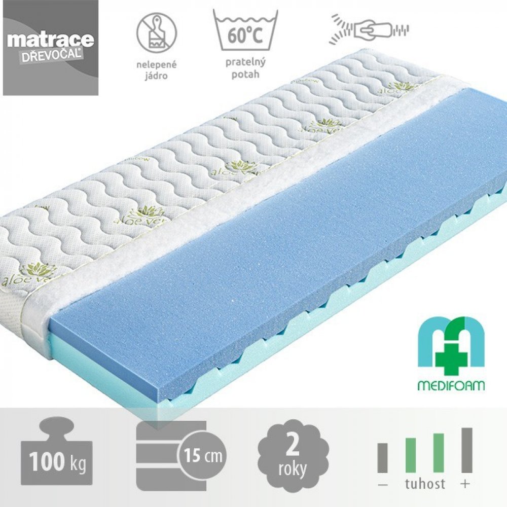 Tato vysoce gramážní pěna byla vytvořena speciální technologií, která se vyznačuje skvělými ortopedickými vlastnostmi. Má dokonalou prodyšnost, pružnost, je tvarově stálá a má dlouhou životnost. Zvýšená pórovitost je velmi dobrá k odvádění tepla z matrace, tato pěna tzv. dýchá. Matrace z pěny MediFoam zajišťují ideální uvolnění páteře, kloubů a svalů po dobu vašeho spánku. Jsou zdravotně testované a mají certifikát Textilního zkušebního ústavu, s. p. v Brně. Pěna MediFoam je garancí kvality.