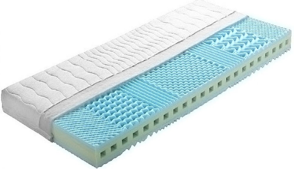 Vrch tvoří elastická pěna MediFoam o hustotě 35 kg/mÂł, která se vyznačuje výbornou tvarovou přizpůsobivostí. Tato pěna má měkčí tuhost č. 2 a nabízí pohodlný dojem při prvním ulehnutí.