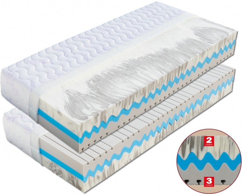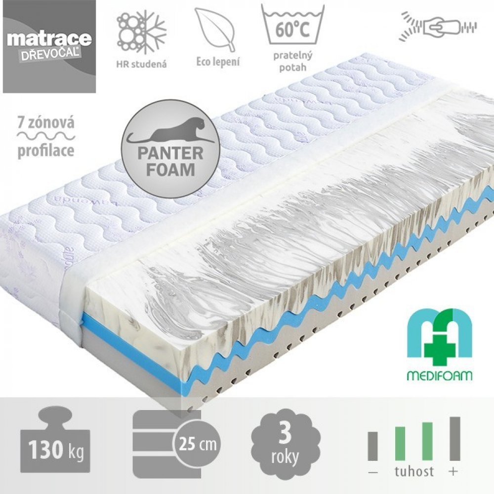 Dřevočal pěnové 7 zón 130 kg tuhost 2 - 3 středně měkká / středně tvrdá hybridní pěna