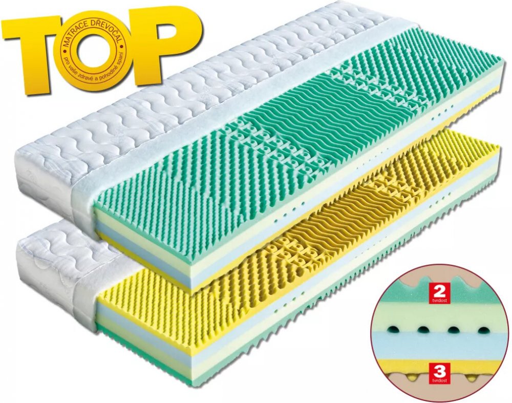 Dřevočal pěnové 7 zón 125 kg tuhost 2 - 3 středně měkká / středně tvrdá PUR pěna