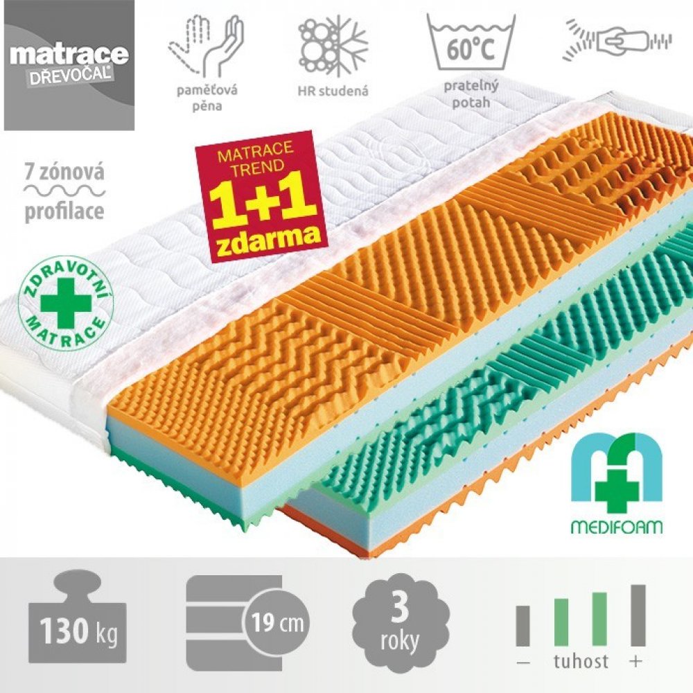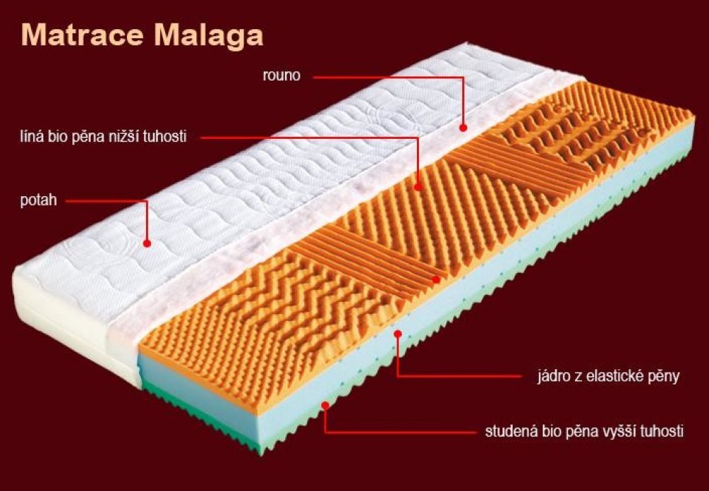 Zelená nosná vrstva tvarovaná do masážních nopů je tvořena z kvalitní pěny MediFoam (35 kg/m a sup3;). Jádro matrace tvoří elastická pěna MediFoam ...