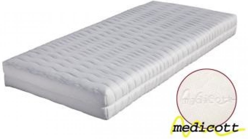 Medicott - Značkový typ pleteného potahu, který svým speciálním složením zabraňuje tvorbě a usazování domácích roztočů a tvorbu plísní. Roztoči žijí v tmavém, vlhkém a málo odvětrávaném prostředí, a tomu přesně odpovídá vaše postel. Hlavní obživou pro roztoče jsou odpadávající buňky vaší kůže. Ty jsou rozkládány plísněmi a tak se stávají stravitelnými pro prachové roztoče. Plíseň samotná způsobuje alergie spojené s dýchacími symptomy. Medicott je účinná složka látky, která zabraňuje v bavlně nebo v látkách s bavlněným základem vzniku plísní a současně přežití prachových roztočů. Medicott má vynikající antibakteriální účinky, které jsou dosaženy bez přídavku chemických látek. Tajemství úspěšného fungování spočívá v odstranění nečistot z vláken přírodní bavlny, čímž se zamezí potencionálnímu domovu plísní. Potah má dlouhotrvající účinek při pravidelné údržbě. Potah je pratelný na 60 a deg;C. Složení potahu: 40procent BAVLNA, 35procent POLYAMID, 25procent POLYESTER.