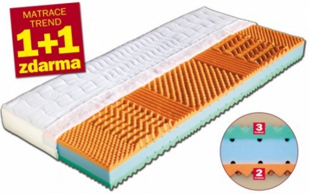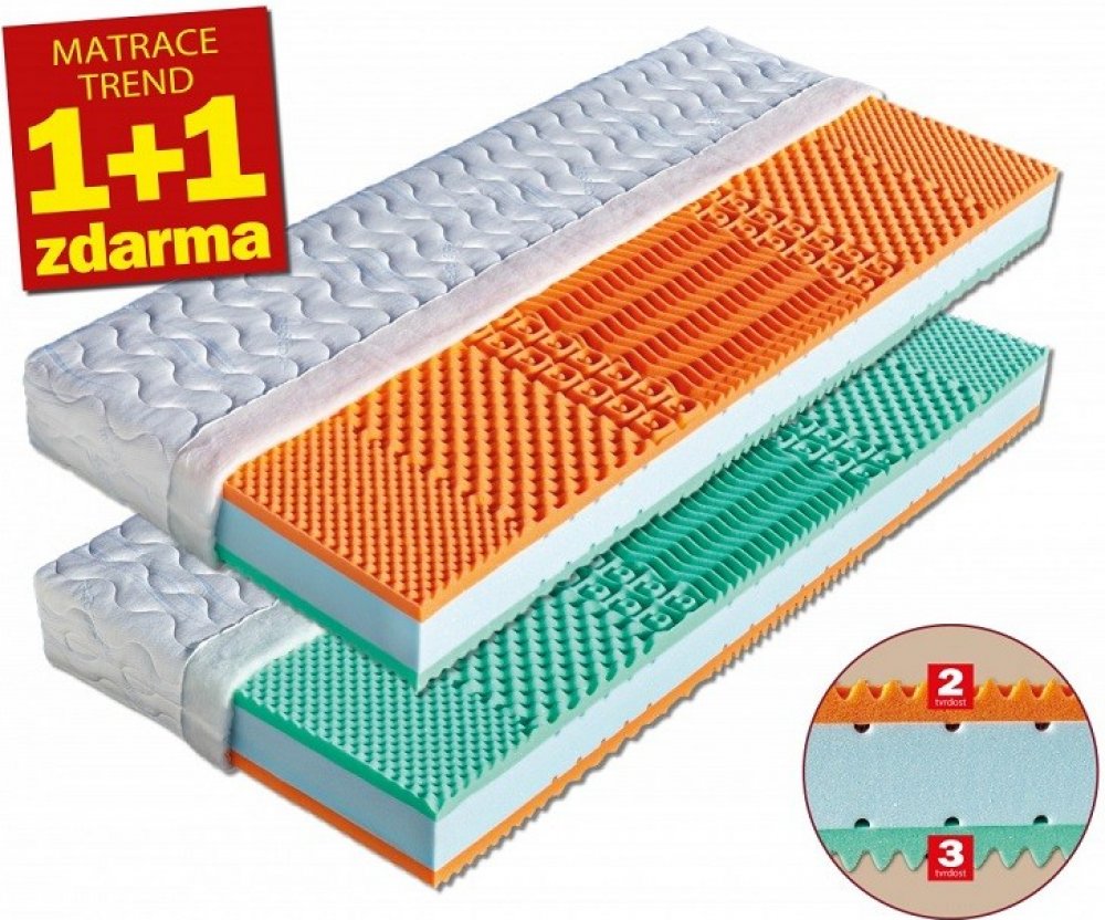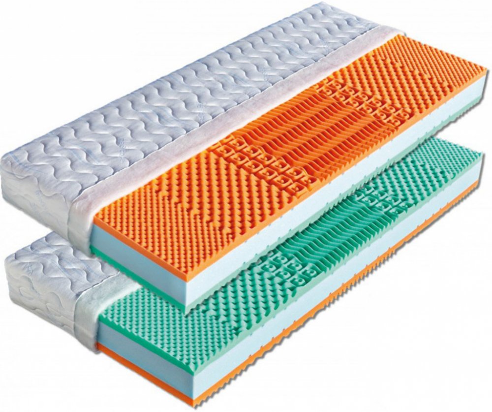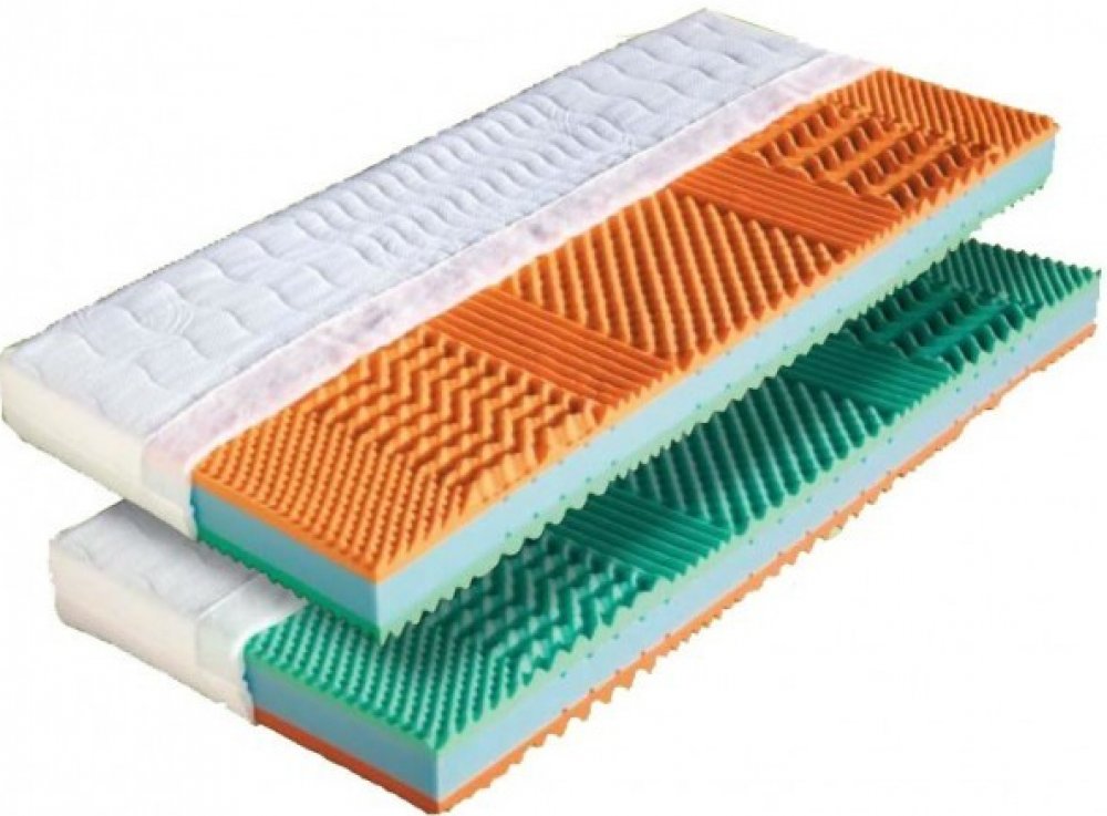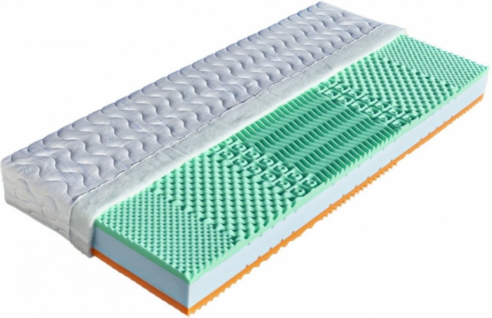 Podrobnosti o produktu MAT-44611 80 x 195 x 19 Kvalitní zdravotní sedmizónová matrace. Oranžová nosná vrstva (45 kg/m a sup3;) tvarovaná do masážních nopů je tvořena z viscoelastické pěny. Použitím této pěny se snižuje protitlak matrace na ležící tělo.